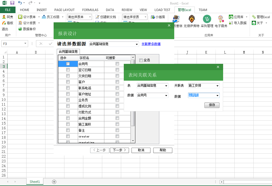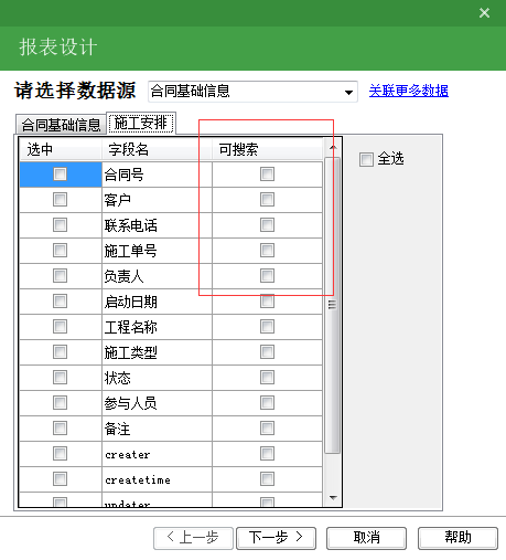 在设计报表的时候,如果出现了两张数据表的情况下。我们可以通过设置表间关联关系得到两个数据表的数据综合到一个报表中使用。