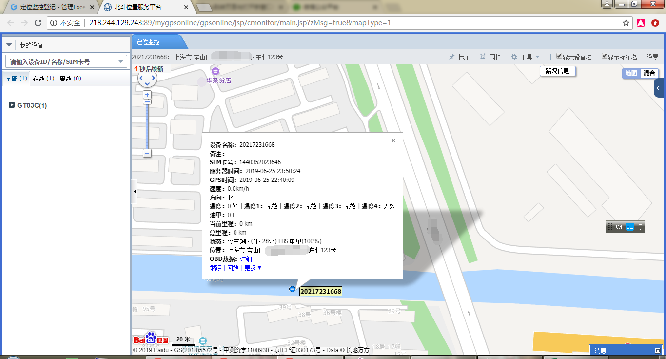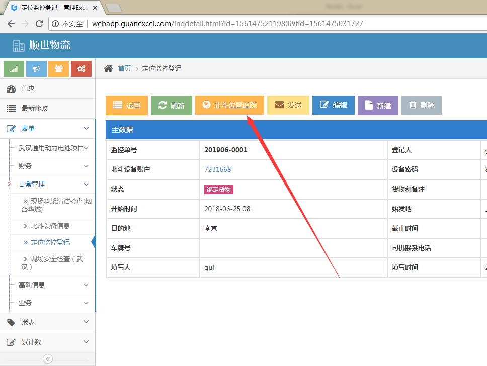 然后将相关设备账户和密码配置好以后,将在页面出现【北斗位置追踪】按钮